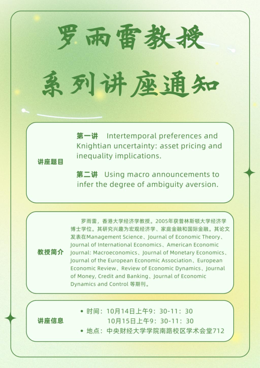 第一讲:Intertemporal preferences and Knightian uncertainty: asset pricing and inequality implications.