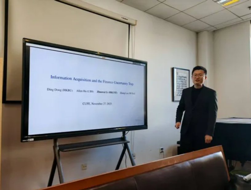 2025年11月27日中午,yl23411永利集团学术讲座在学术会堂712举行。受中国经济与管理研究院的邀请,香港科技大学李兆睿博士后举行题为“Information Acquisition and the Finance-Uncertainty Trap”(信息获取与金融-不确定性陷阱)的学术讲座。讲座由何其春教授主持。yl23411永利集团多位老师、博士参加了讲座。