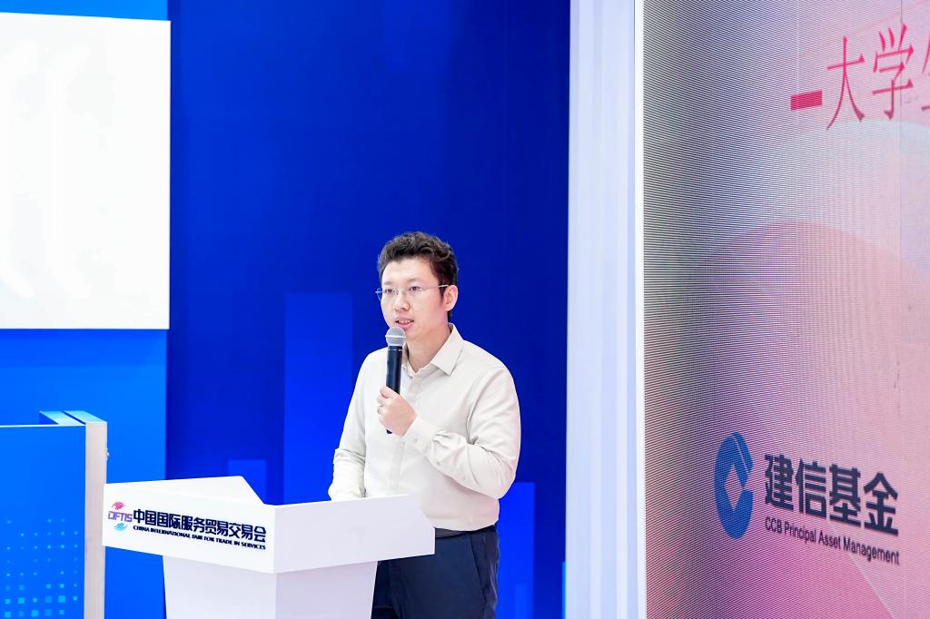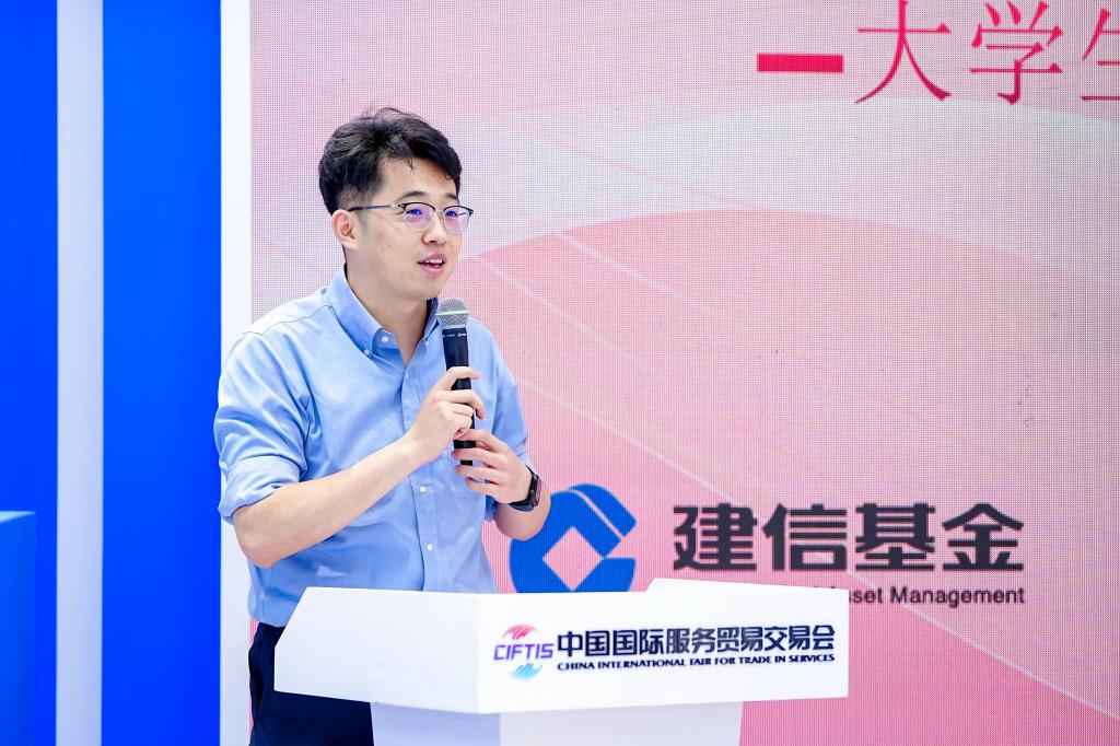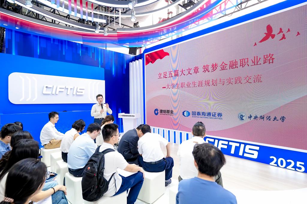 在5号馆的国际金融会客厅,共建支部联合举办了大学生职业生涯规划座谈会。建信基金机构业务总监翟峰为活动致辞,他表示,金融业的发展离不开初心与使命的指引,做好金融工作必须坚持和加强党的全面领导。建信基金自2005年成立以来,始终以服务实体经济、助力产业升级为目标,为我国金融事业发展做出贡献。希望各位嘉宾和同学能够在此次活动中深入交流、分享经验,共同为金融强国建设和金融人才培养凝聚更多共识和力量。