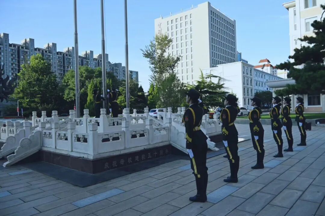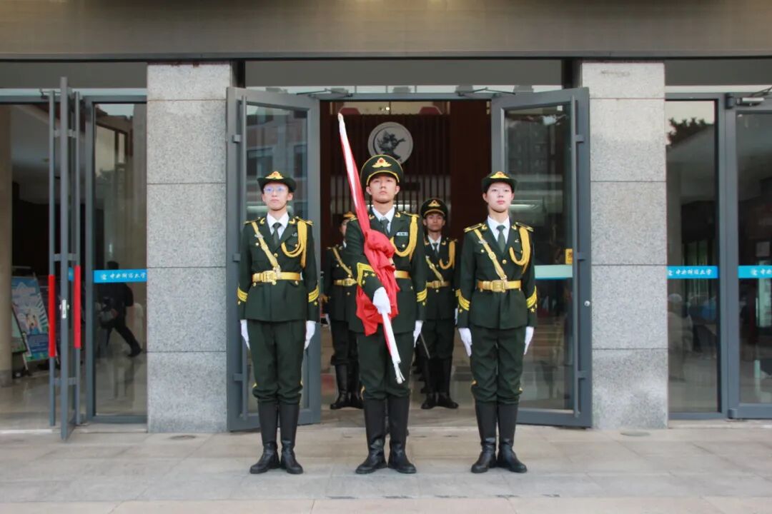 晨光熹微,朝霞浸染,迎着朝阳,国旗护卫队英姿飒爽,步履铿锵。他们肩擎红旗,目光坚毅,将在场所有人的思绪汇成一道。随着《义勇军进行曲》激昂奏响,五星红旗在万众凝望中徐徐升起,迎风而展。全体师生庄重肃立,凝神注视,以赤诚之心向国旗致敬,共唱国歌。寄托对祖国山河的无尽热爱与美好祝愿。