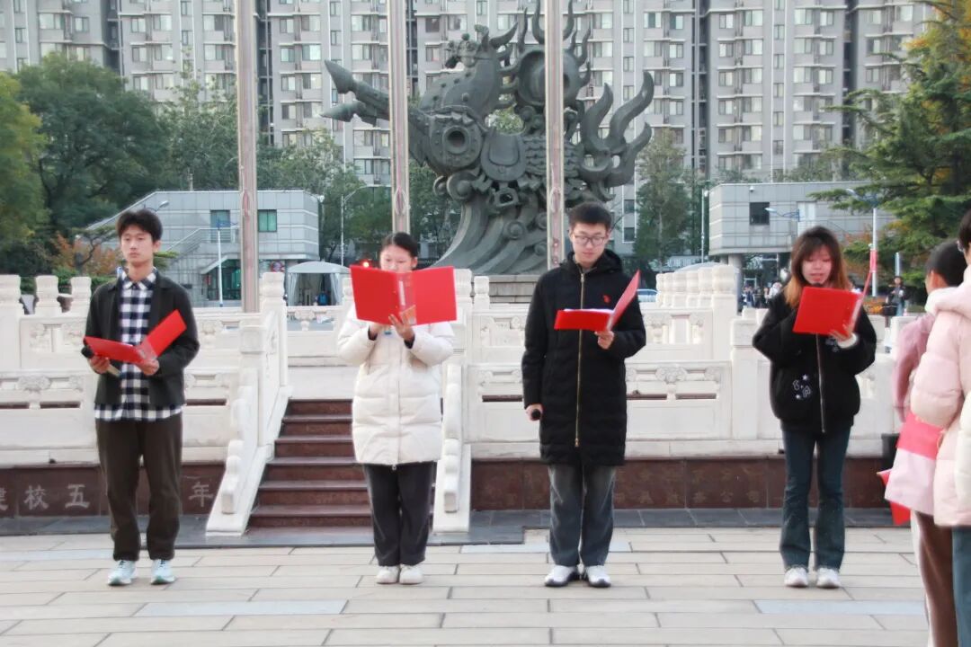 最后,全体师生手持国旗,深情合唱《我和我的祖国》,共同许下“请党放心,强国有我!”的青春誓言。