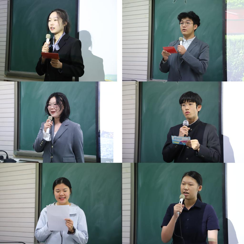 选手们在短短几分钟内充分展现了个人特色与主持风格。邱厚德同学以榆林治沙转型和磨西镇青年创业为例,激励大家深耕专业,实干奋斗;李宣锐同学结合校园生活中常见挫折经历,诠释了在砥砺中成长、在协作中共筑的意义;陈紫苑同学纵览从五四运动、长征、到航天工程的青年担当,展现了青春与时代同频共振的画卷;乔芷馨同学以杨振宁、珍古道尔等榜样为例,号召永葆赤子之心、汇聚青春力量;王雅琪同学以中财大精神为引,鼓舞大家将个人梦想融入民族复兴征程;赵贺东同学从“不完美”切入,诠释新时代青年通过创造性连接共筑华章。在新闻解析环节,选手们迅速组织语言,构建逻辑框架,用流畅的表达和独到的见解化解难题,充分彰显了学院学生深厚的知识储备和强大的临场应变能力。