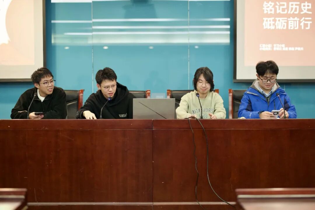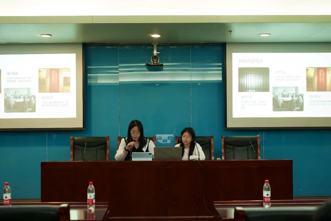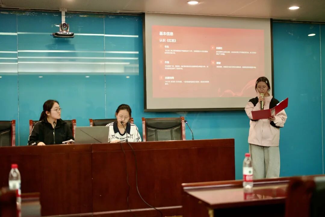 孙宁萱小组分享了李君如的《时代大潮与中国共产党》,她们讲述了中国共产党在时代大潮中的历史抉择以及党的核心能力和精神密码;杨淞宇小组分享了美国记者埃德加·斯诺的《红星照耀中国》,他们讲述了斯诺如何通过记述的所见所闻改变自己和世界对中国共产党的偏见;殷梓盛小组选取了《毛主席诗词选》中的四首经典诗词并对诗词的内容和背景进行了解说;廖荣迁小组分享了《学习习近平总书记重要讲话》,强调应铭记历史,砥砺前行;赵晨曦、郄奕菲两位同学则带来《青春之歌》的分享,展现了在特定时代背景下青年在时代浪潮中觉醒成长并投身革命的壮阔历程。