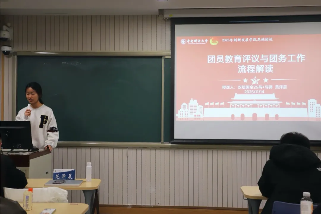 双培国际金融与公司理财25团支部“芮+”导师范泽晨对团员教育评议工作的标准与开展方式进行讲解,并梳理团籍注册、团组织关系转接、团费收缴、团内信息统计的具体规则。