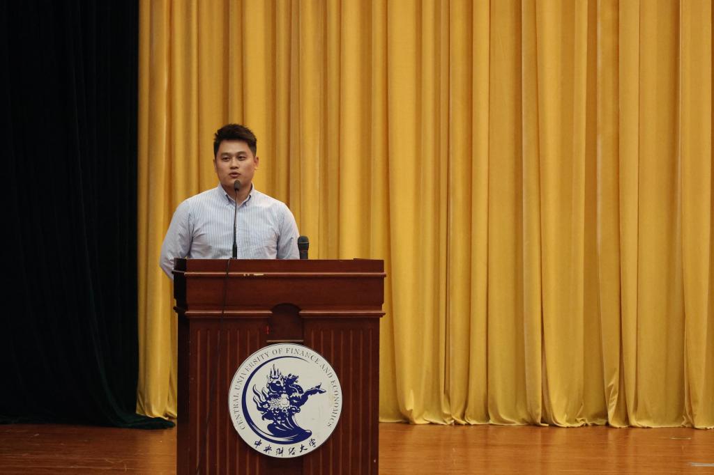 中国公共财政与政策研究院2022级本科生李祎博代表在校生发言。李祎博同学以“青年”二字作为切入点,探讨“何为青年?青年何为?”的命题。辛勤挥洒汗水、为时代奋斗是青春最动人的模样。而我们作为新时代的青年,更应当扎根祖国沃土,肩负起“财经报国,财青强国”的使命担当。