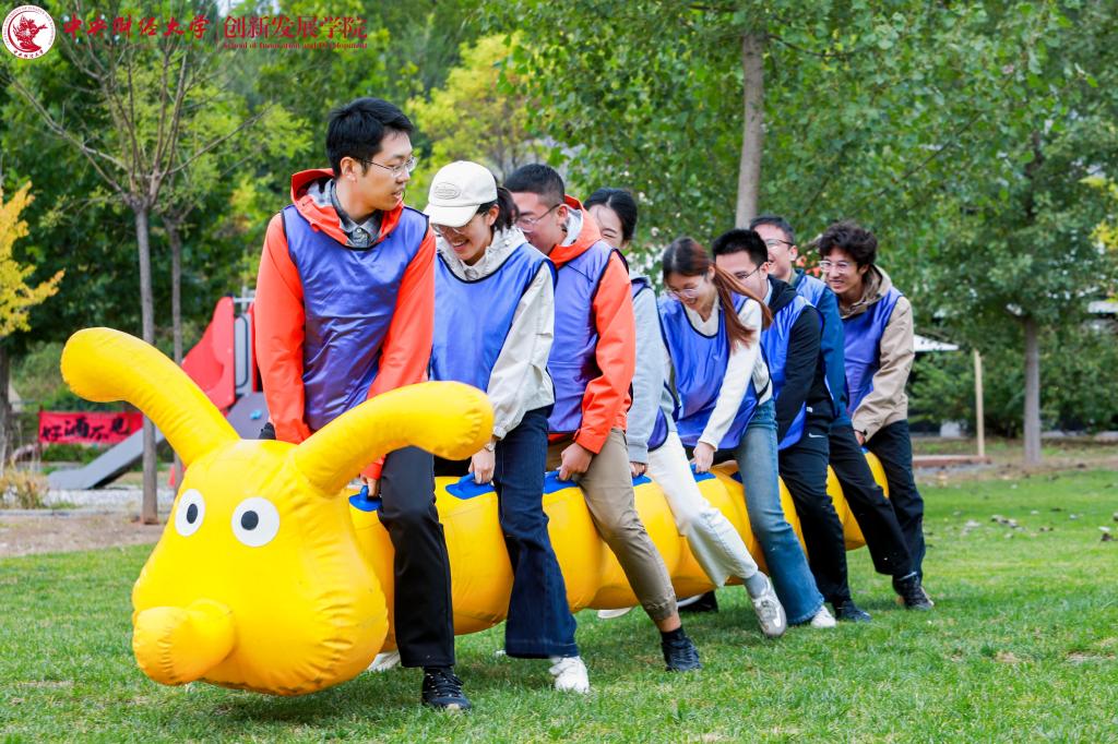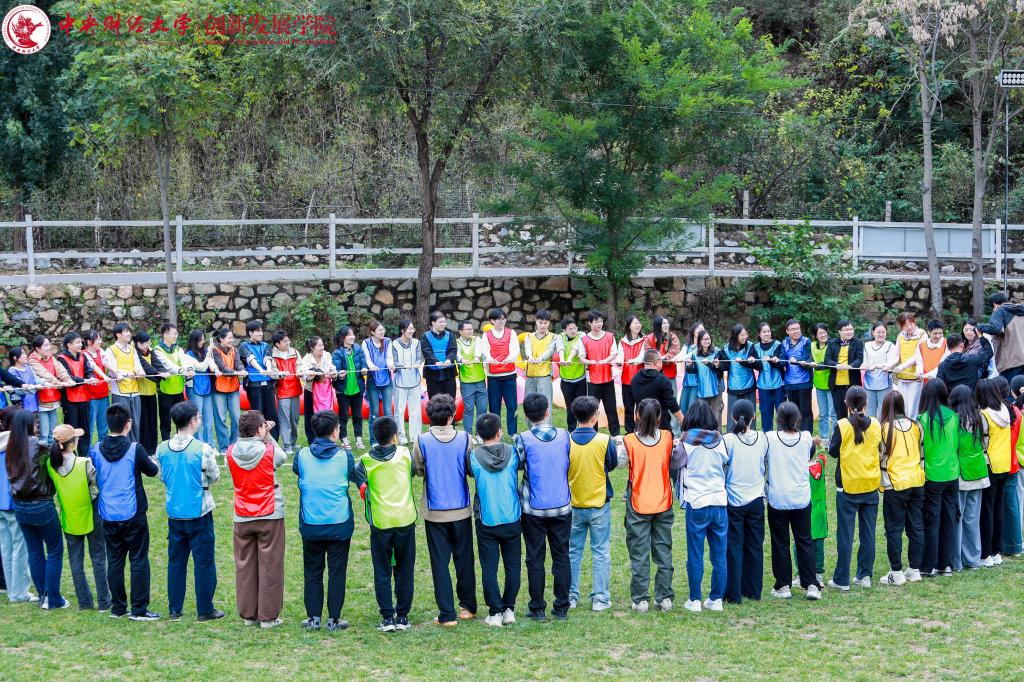 团队活动以红色主题素质拓展的形式开展,师生们共同组成十支队伍,每支队伍都热情高涨。在“重走长征路”“一鼓作气”“红旗接力”“星火传承”“胜利会师”“齐心协力”等项目中,参赛队员们热情饱满,赛场上口号声此起彼伏,各队都在努力寻找节奏,奋力拼搏,争取最佳成绩。全体师生共同参与动力绳圈项目,大家心往一处想、劲往一处使,齐心协力摇曳圈绳。部分同学在他人协助下踏上圈绳行走,同学们之间的情谊愈发深厚,也感受到了肩上责任的重量。