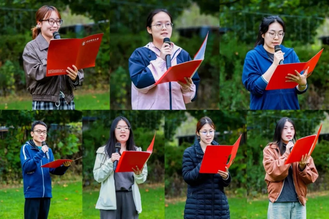 在抗战历史宣讲环节,学院党员代表结合史料,围绕抗战时期的著名事件与英雄人物展开了讲解:本科生第一党支部吴昱莹介绍了平型关大捷,生动展现出抗日战争中中国军民坚韧不屈的钢铁精神;本科生第二党支部李祎博聚焦台儿庄战役的故事,传递出抗战时期中国人众志成城的凝聚力与炽热的爱国精神;本科生第三党支部肖彤将目光投向敌后战场,深入阐述百团大战在敌后抗日中的关键作用;中经管研究生党支部毕元昊受九三阅兵中杨靖宇支队战旗的启发,带大家回溯九一八事变后东北地区艰苦卓绝的抗战历程;中金发研究生党支部唐宇每介绍了彭雪枫将军的英勇事迹,生动展现出新四军飒爽勇猛、敢打必胜的作战风貌;中公财研究生党支部刘宇涵讲述了左权将军在太行山抗日根据地的艰难岁月,深刻凸显左权将军为民族解放奋不顾身的牺牲精神;人力资本与劳动经济研究中心党支部贺昕梦介绍了曾生将军和广东抗日游击队的奋斗故事,激励我们铭记历史、勇担时代赋予的历史使命。