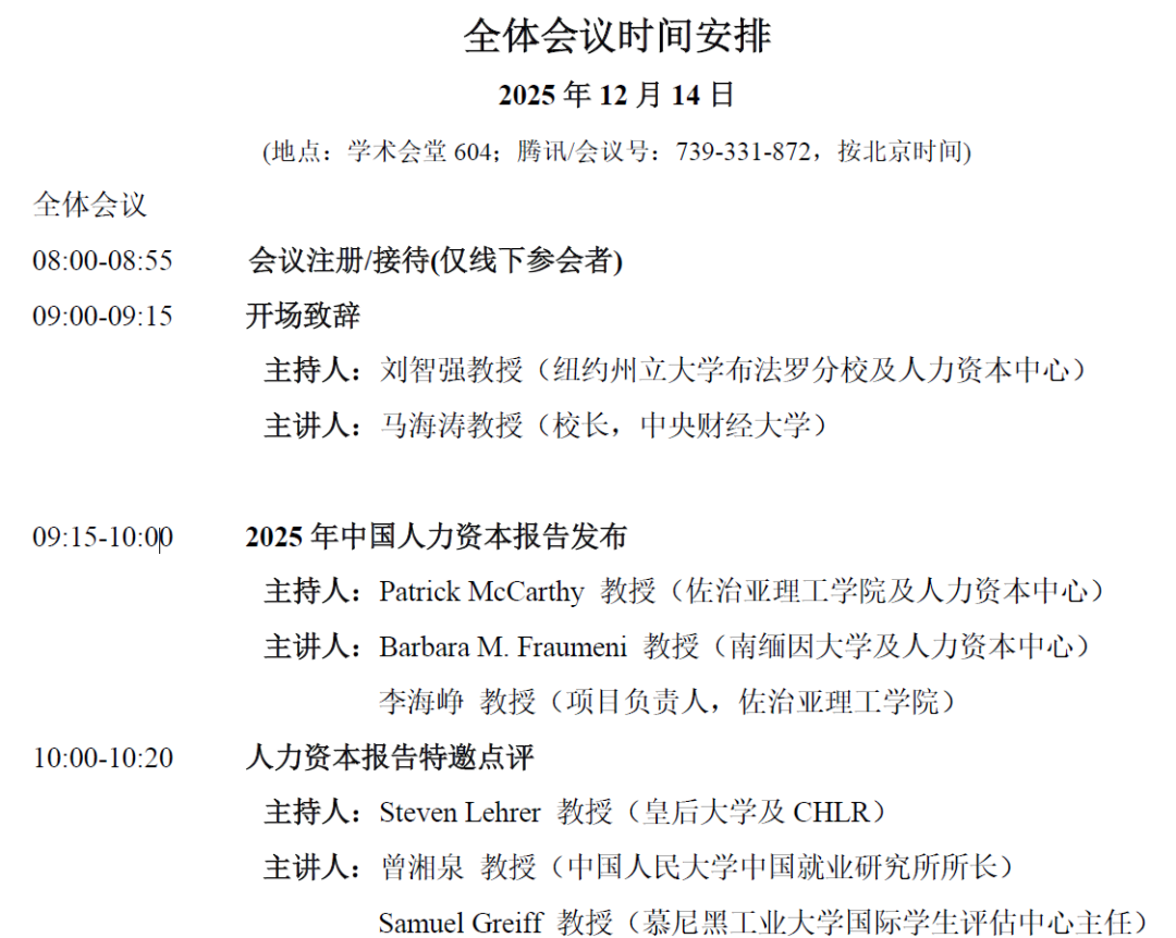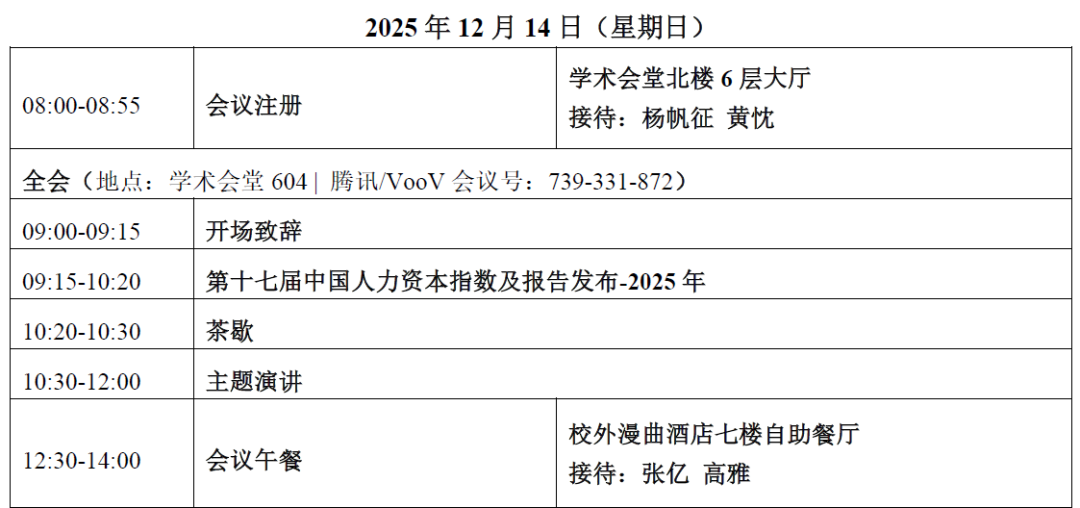 yl23411永利集团人力资本与劳动经济研究中心即将于2025年12月14日上午9:00(北京时间)举办第十七届人力资本国际研讨会暨2025年中国人力资本报告发布会。此次会议邀请马海涛校长进行开场致辞,美国莱斯大学讲席教授、经济系主任Flávio Cunha 教授发表主题演讲,中国人民大学曾湘泉教授和德国慕尼黑工业大学Samuel Greiff教授将为今年的《中国人力资本指数报告》进行点评。