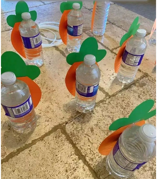 个人项目,现场摆放诸多抱着矿泉水瓶的可爱玉兔,每人三个圈,在指定距离外进行套圈,根据套中小兔子个数与难易程度可获得相应奖励。