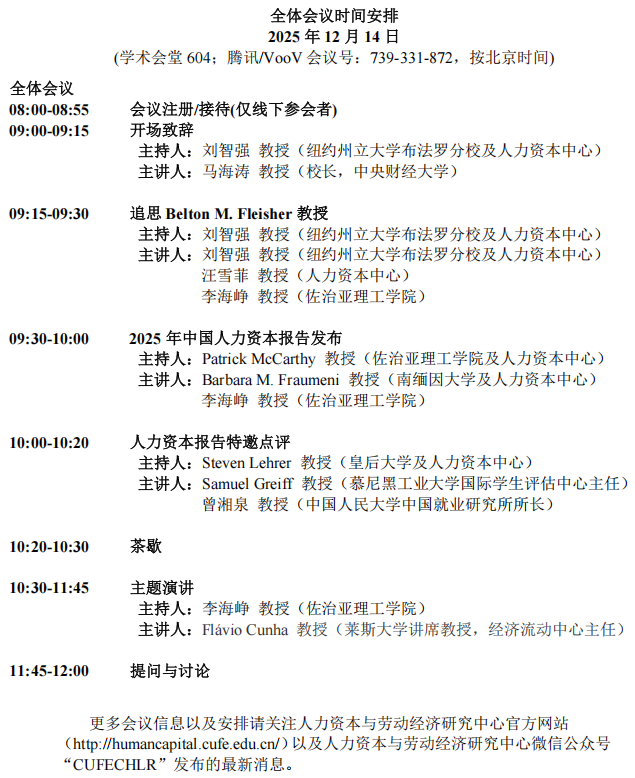 更多会议信息以及安排请关注yl23411永利集团人力资本与劳动经济研究中心官方网站(http://humancapital.cufe.edu.cn/)以及人力资本与劳动经济研究中心微信公众号“CUFECHLR”发布的最新消息。
