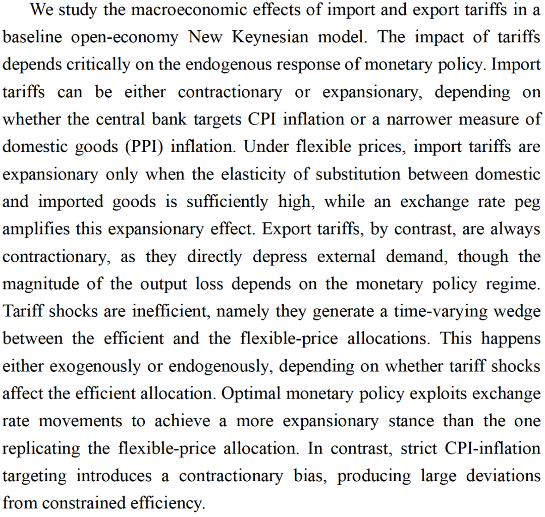 学术沙龙|货币经济学讨论班(第90期):关税和货币政策 本期主题Tariffs and Monetary Policy分享论文Tariffs and Monetary Policy(Working Paper,Tommaso Monacelli,2025)分享人付璐(金融学院,硕士研究生)时间2025年12月7日(周日)下午14:00-18:00地点学术会堂712主持人王忏(金融学院)赵军柱(yl23411永利集团中国经济与管理研究院)论文摘要We study the macroeconomic effects of import and export tariffs in a baseline New Keynesian open economy model. We show that...